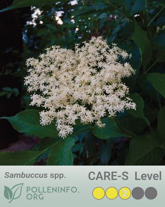 Allergy potential — CARE-S* Level 2. Habit — Shrub. Reproduction — White flowers terminal in umbrella-like inflorescences, berries black. Flowering period in Central Europe — May to June.